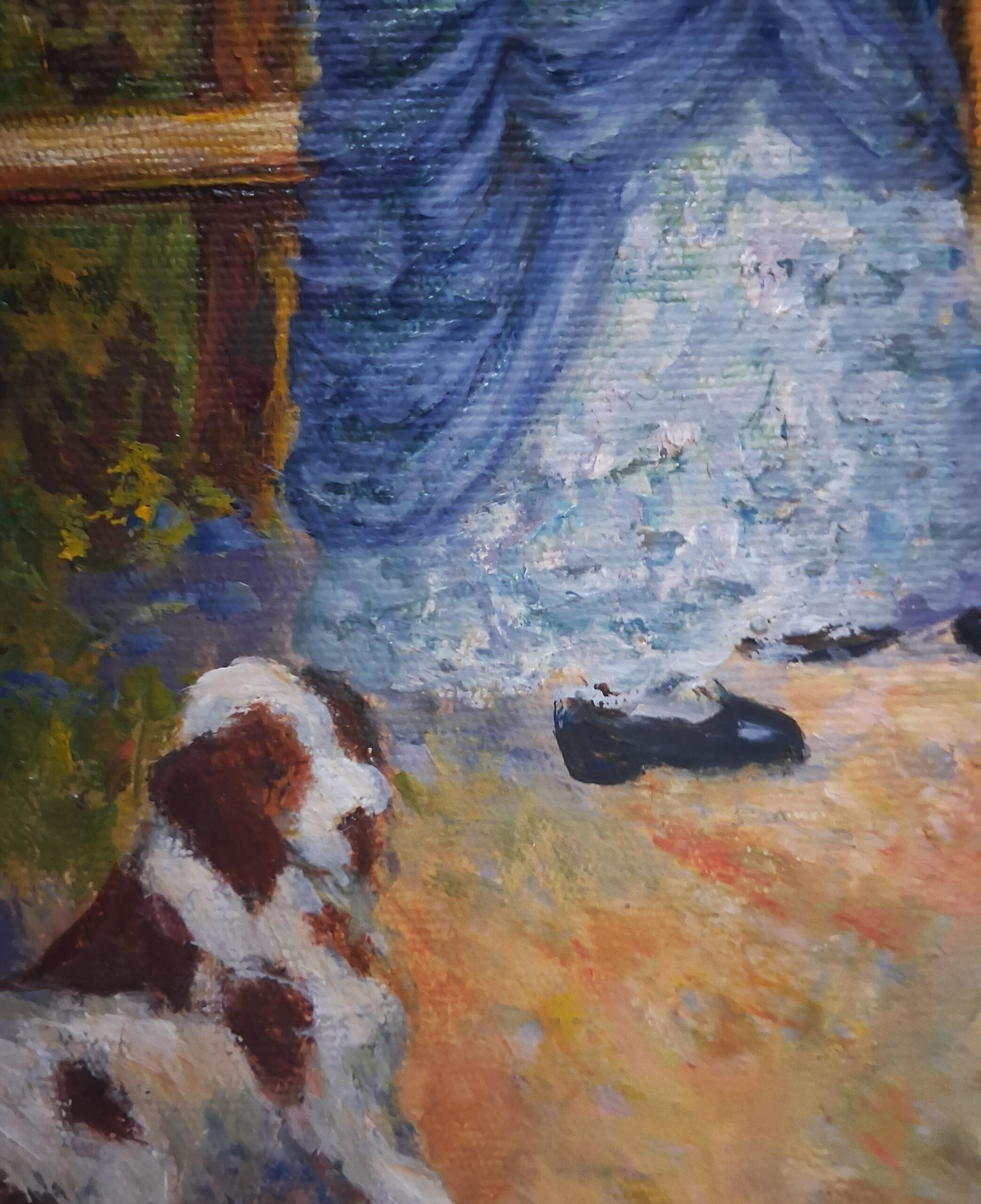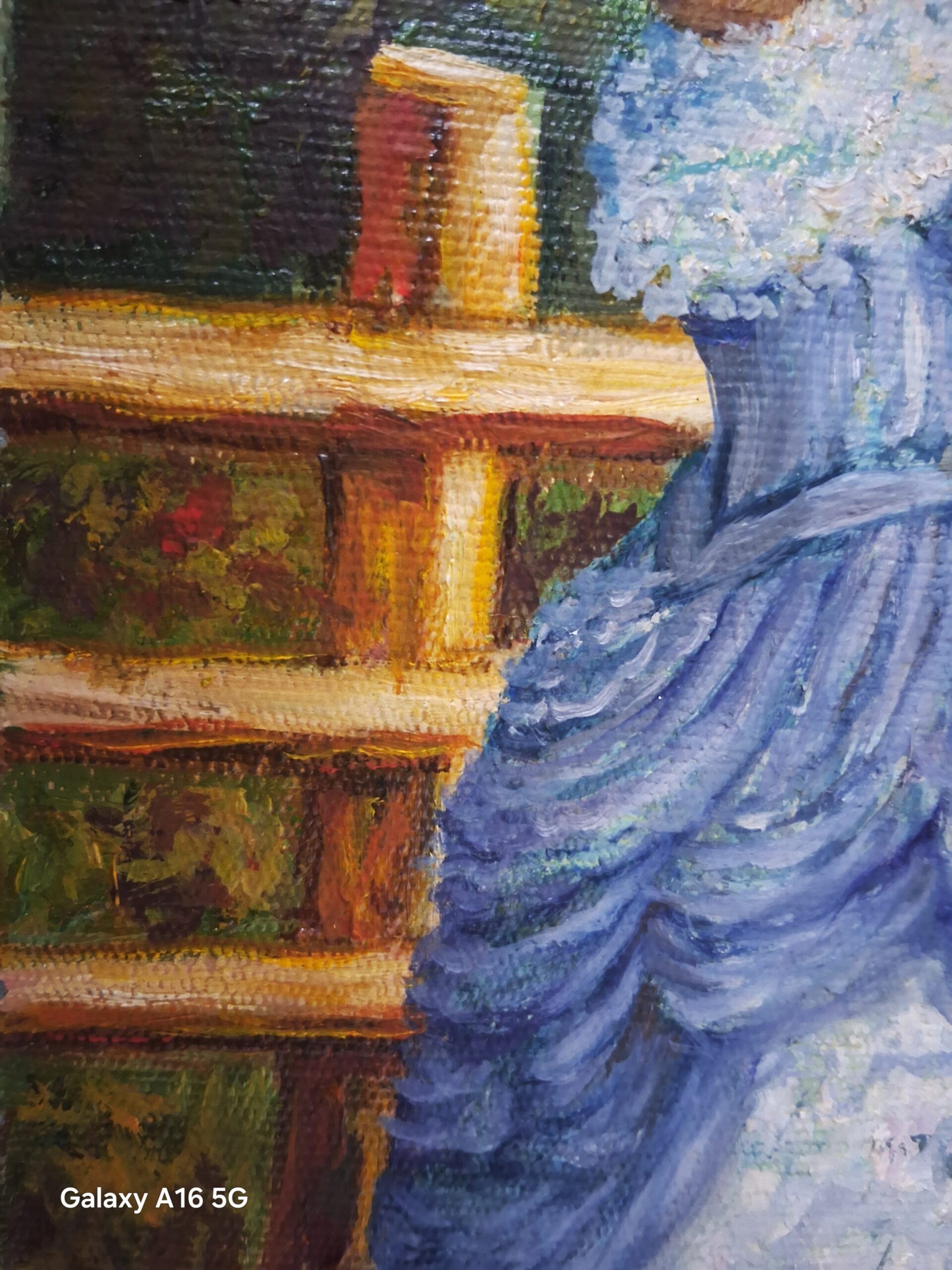 This artwork is an original, hand-painted oil painting created by the artist. It is inspired by classical American art and is not a reproduction or print, with the artist’s signature.