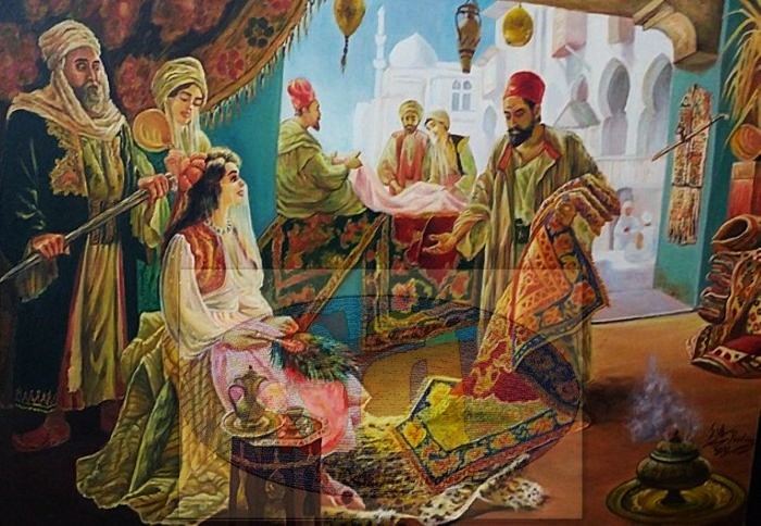 The collection highlights the diversity of traditional clothing, decorative patterns, local crafts, and social environments, portraying scenes of both wealth and poverty with remarkable precision. Every painting is crafted using **oil colors on high‑quality canvas**, with intricate details that resemble mosaic‑like compositions, giving each piece a unique visual texture.